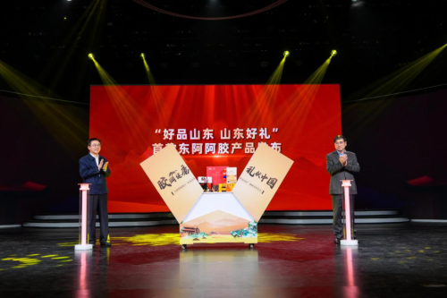 活动现场正式发布“好品山东 山东好礼”首款产品——东阿阿胶三款定制礼盒。山东省商务厅二级巡视员蔡玉祥与山东广播电视台党委副书记、总编辑周盛阔共同开启礼盒,标志着“好品山东”品牌赋能产品迈出关键一步。