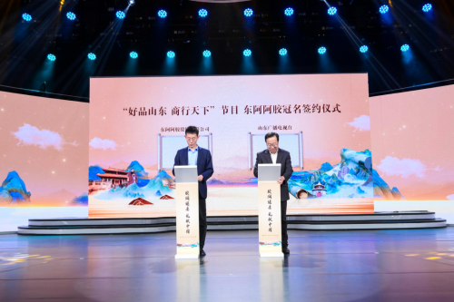 2025年,东阿阿胶将与山东广电进一步深化战略合作。以“好品山东 山东好礼”首款产品发布为契机,东阿阿胶股份有限公司副总裁李新华、山东广播电视台生活农科管理运营中心总监谭鲁民共同完成“好品山东 商行天下”节目东阿阿胶冠名签约仪式,两大齐鲁名片双向赋能,推动山东品牌出彩出圈。