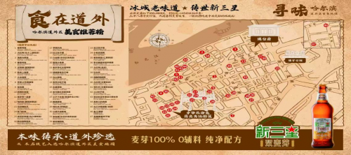 这条满含诚意的视频迅速引发全网共鸣,不仅让更多人关注到哈尔滨的本土滋味,更让同样想“推介家乡、助力文旅”的百年本土品牌新三星啤酒挺身而出。作为1904年便扎根本土的老字号,新三星与哈尔滨早已血脉相连,从1990至2000年代风靡街头的“大绿棒子”,到如今全新升级的“双麦芽”系列,品牌始终以坚守本味的初心,陪伴着一代又一代哈尔滨人成长。这份对家乡的深情,让新三星毫不犹豫地响应了左右哥的呼唤,组建专门团队,开启了一场跨越老道外的寻味之旅。历经数月,一份满载诚意的《食在道外 冰城美食地图》应运而生。