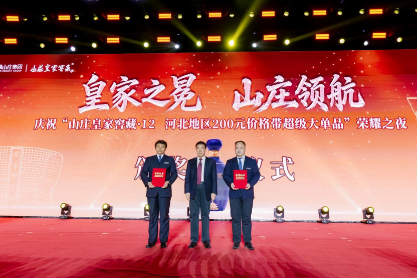 2026年4月19日晚,星光璀璨,酒香满城。备受行业瞩目的“山庄皇家窖藏·12 河北地区200元价格带超级大单品荣耀之夜”在钟灵毓秀的山庄老酒国家4A级文化景区隆重举行。会上,山庄集团正式宣告“山庄皇家窖藏·12”单品销量突破300万瓶的惊人业绩。这场融汇了震撼光影秀、硬核科技解码与千人狂欢的盛典,不仅见证了冀酒龙头在核心价格带的绝对统治力,更向全行业吹响了山庄老酒“雄霸河北、进军全国”的嘹亮号角。