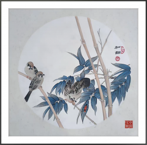 作品《幸福家庭》国画由韶山红色文化研究会刘桂芳会长珍藏;
