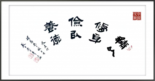 不妨看,《习近平-敬民篇》、《名人格言》作品,透过他的书法功力看他的艺术才能。徐志敏的书法探究,源归于篆书,小篆得成形尚婉、意能通的高度,笔笔画画都能准确体现小篆笔意和笔势的源正形态。用笔中锋为宗,在立骨的基础上,营生圆实劲健,气韵流畅的姿态,正宗古法、风格统正。他的小篆用笔虚灵,极讲法度,掌虚指实,求得内敛却又通达的笔韵效果,观之气息浩然,正宗源本。
