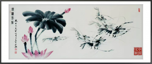 作品《龢》水墨龙蝦国画,作为国礼被穆斯塔法·萨法日尼大使收藏;