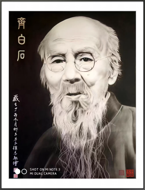 作品《齐白石》炭精画由中国齐白石艺术研究院收藏;