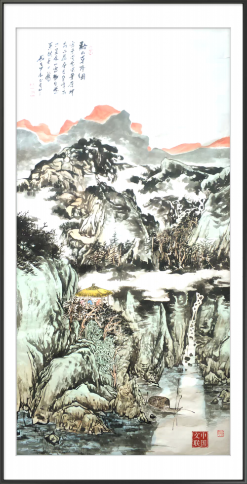 作品《笃定前行》古意山水小品,作为国礼在《2024全球外交官迎新晚宴-国际艺术交流》中被谢赫·穆哈马德·夏立克大使珍藏;