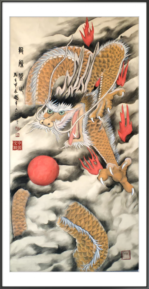 作品《龙行天下》国画由韩国韩中书画研究会会长李善熙珍藏;