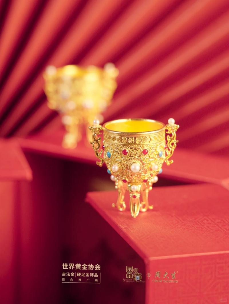 另一延续深情的经典之作,是藏礼·典藏系列中的真爱永固对杯。其设计蓝本是故宫博物院珍藏的“金瓯永固杯”,昔为帝王祈愿国运昌隆之礼器。品牌以精湛工艺重塑其华美形制,錾刻宝相花纹,缀以珐琅与珍珠,华贵中含庄重。此对杯适于新婚或纪念时刻,用作合卺共饮之器,寓意“此生携手,岁月同固”,将“国之盛世”的宏愿,融入至“爱之圆满”的幸福中。