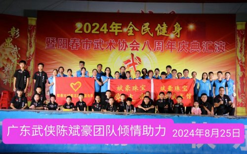 阳春创业十年,风雨兼程,初心不改,作为一名习武之人和武术传承者,时刻谨记武德修养,侠之大者,为国为民的侠义豪情。行侠仗义,热心公益,以实际行动影响带动身边成百上千个爱心企业(人士)加入公益队伍,为促进阳春公益正能量事业健康蓬勃发展贡献青春力量,为广东武术界树立标杆和榜样,教武育人,为党育才。