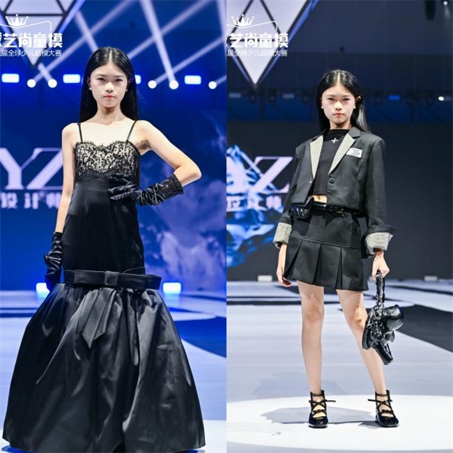 YZ品牌秀的登场,让简约美学在石雨晨的身上鲜活绽放!品牌服饰虽以简约为基调,却在细节处藏满巧思。石雨晨踩着节拍穿梭秀道,既演绎出品牌对剪裁与材质的极致追求,又用童真赋予服装优雅与灵动,让每一套作品都成为舞台上的焦点。