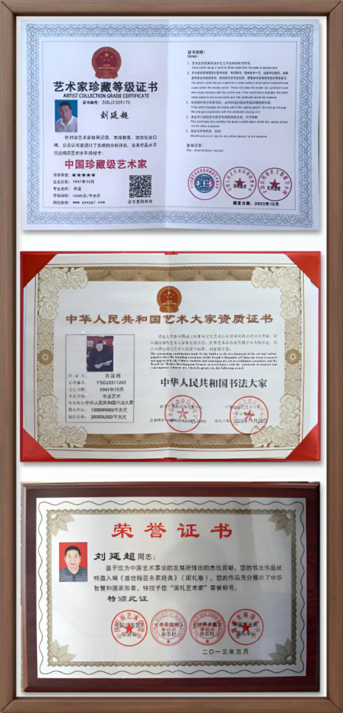 2013年5月,被中国书画艺术促进会、中国紫光阁国礼中心等单位授予“国礼艺术家”荣誉称号。2013年7月,被中华文化艺术推广联合会、中华人民美术网等单位授予“最具市场升值潜力艺术家”荣誉称号。2015年,书法作品及长城题词入选八达岭新长城基石镌刻,永久展示;11月被授予“中国新长城杰出艺术家”荣誉称号。2016年12月联合国和平书画院为其颁发终身院士证书。2018年4月中国中外名人文化研究会学术委员会为刘延超颁发“中国艺术大师”荣誉称号。2021年2月被中国互联网新闻中心授予“建党百年献礼功勋艺术家”荣誉称号。2022年5月被联合国授予二十届“国际和平艺术家”荣誉称号。2022年11月由国礼特供艺术家评审委员会等单位授予“国宝级艺术大师”荣誉称号。2024年2月,受聘世界艺术家联盟主席团副主席。2024年8月,被国艺委书画艺术博物馆聘请为,海口国艺委书画艺术博物馆馆长。