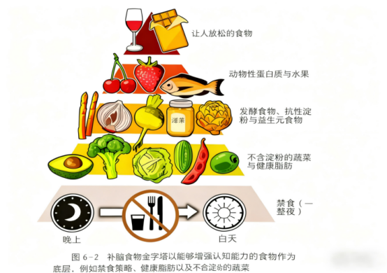 ③补脑饮食金字塔:这种以丰富植物性食物、全谷物、橄榄油、适量鱼类为特点的饮食,被研究证实有益于肠道和大脑健康。