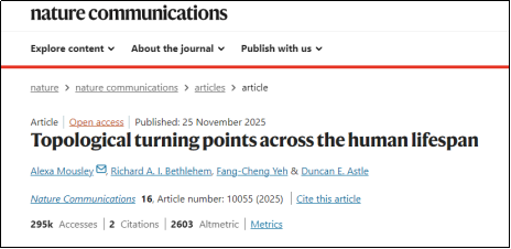 传统上,人们普遍认为大脑能力会随着年龄增长而逐步下降。一项由剑桥大学团队主导,发表于《自然-通讯》(Nature Communications)的重要研究,通过对近4000名从幼年到老年(0岁至90岁)参与者的大脑扫描数据进行分析,发现:我们的大脑发育并非一条平缓下降的直线,而是在9岁、32岁、66岁和83岁四个关键年龄段经历显著转折。其中32岁是变化最剧烈的转折点之一,也常被视为大脑综合性能的巅峰阶段。此时,大脑在处理速度、执行功能与复杂问题解决能力之间,进入高效稳定的“性能巡航期”:从青春期的强劲加速切换到了平稳省油的高速巡航模式。