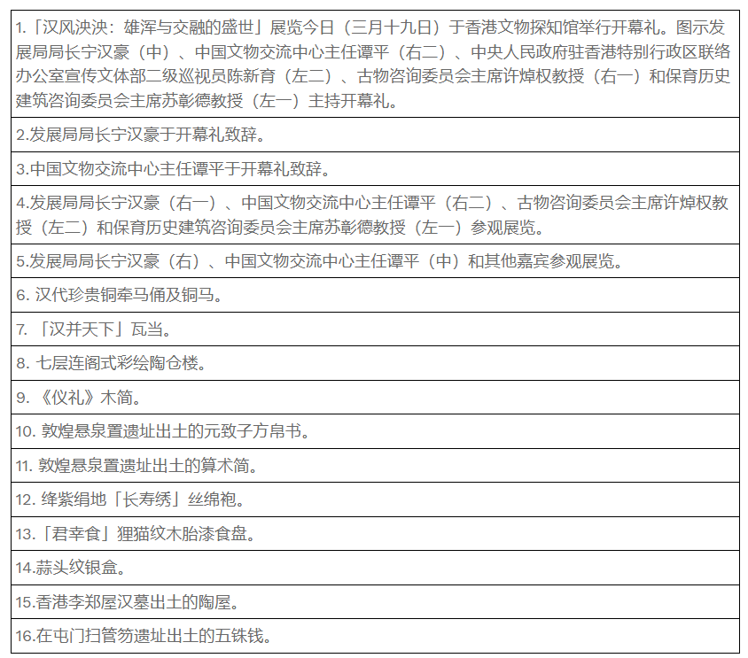 有关展览和导赏服务的更多详情及精华短片,请浏览古物古迹办事处网页(www.amo.gov.hk/tc/visitor-centre/exhibitions/heritage-discovery-centre/han-exhibition/index.html)。