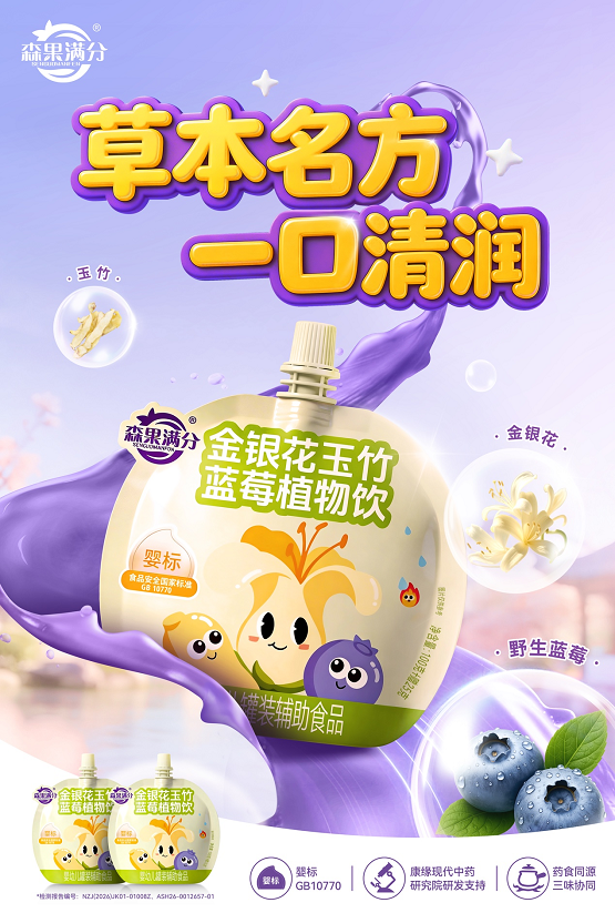 这款金银花玉竹蓝莓植物饮参考了“玉竹麦冬汤”的研发思路,通过金银花、菊花与玉竹的科学协同,给身体内部做了一次温和的“补水”。它去除了草本的药味,保留了植物的清香,还特别添加了野生蓝莓原浆,是家庭在换季时节或日常餐后的清润陪伴。