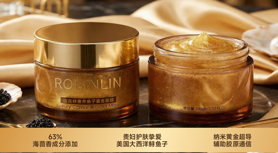 面膜延续了露宾林极致、奢华的产品基因,将多款珍稀成分与专利技术融合:冷海PDRN源自北纬65°冷海三文鱼是“婴儿针”核心成分;63%超高浓度海茴香位居全成分第一位,无水配方开启植提代水新纪元;再搭配大西洋鲟鱼籽酱提取物、纳米级黄金、多肽矩阵等珍贵成分,打造出“20分钟敷出光泽婴儿脸”的滋润抗衰效果。同时,品牌以科创实现“无创式”院线级护理的突破,让消费者在家就能享受高端抗衰SPA体验。